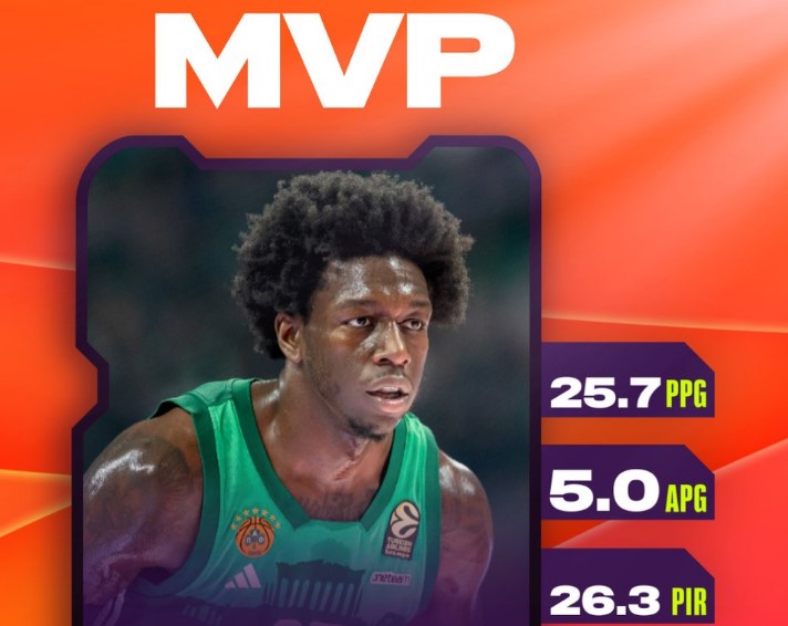 Στη λειψή, λόγω εθνικών ομάδων, δράση του περασμένου μήνα, που περιλάμβανε μόνο τρεις αγώνες, ο Αμερικανός γκαρντ του Παναθηναϊκού είχε μέσο όρο 25,7 πόντους, 5 ασίστ και 26,3 PIR στις νίκες των Πρασίνων απέναντι σε Φενέρμπαχτσε, Αναντολού Εφές και Βιλερμπάν, επιδόσεις που τον ανέδειξαν MVP Φεβρουαρίου.