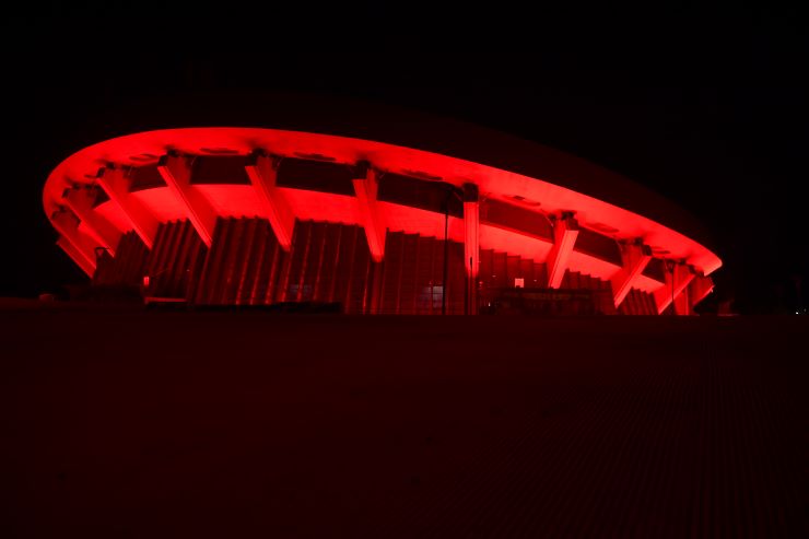 Στα κόκκινα φωταγωγήθηκε το βράδυ της Πέμπτης το Στάδιο Ειρήνης και Φιλίας και ο λόγος είναι… Ολυμπιακός!