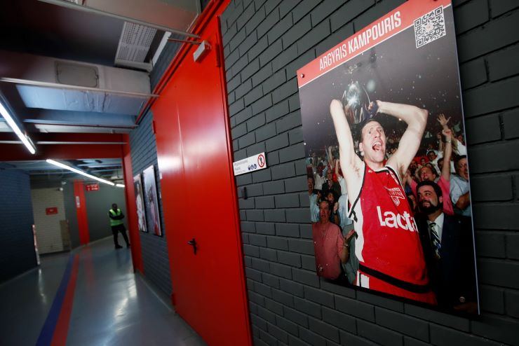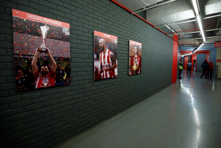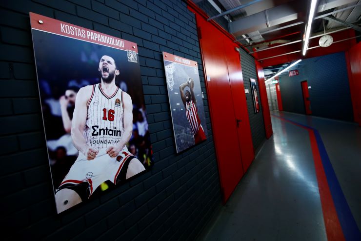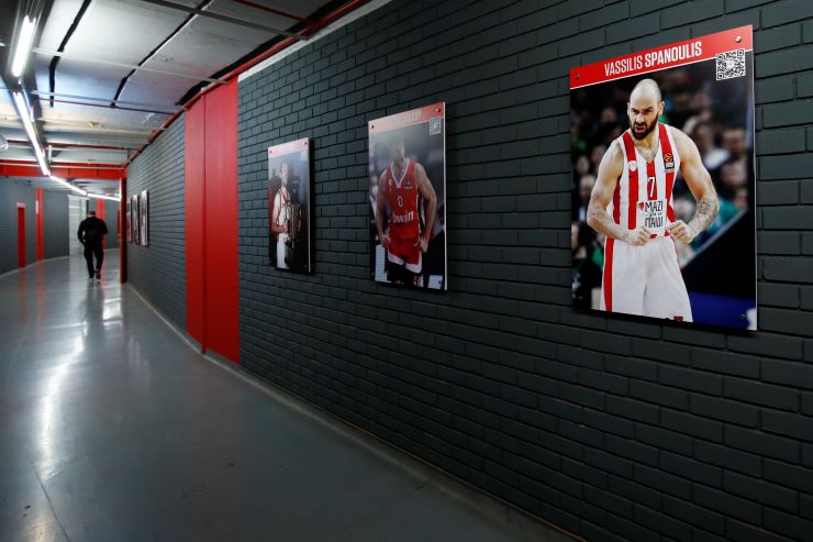 Η ερυθρόλευκη ΚΑΕ είχε προαναγγείλει πως στους διαδρόμους θα τοποθετηθούν 100 αφίσες (50 μπασκετμπολιστών και 50 αθλητών από όλα τα τμήματα του συλλόγου) που άφησαν ιστορία με τον δαφνοστεφανωμένο στο στήθος.