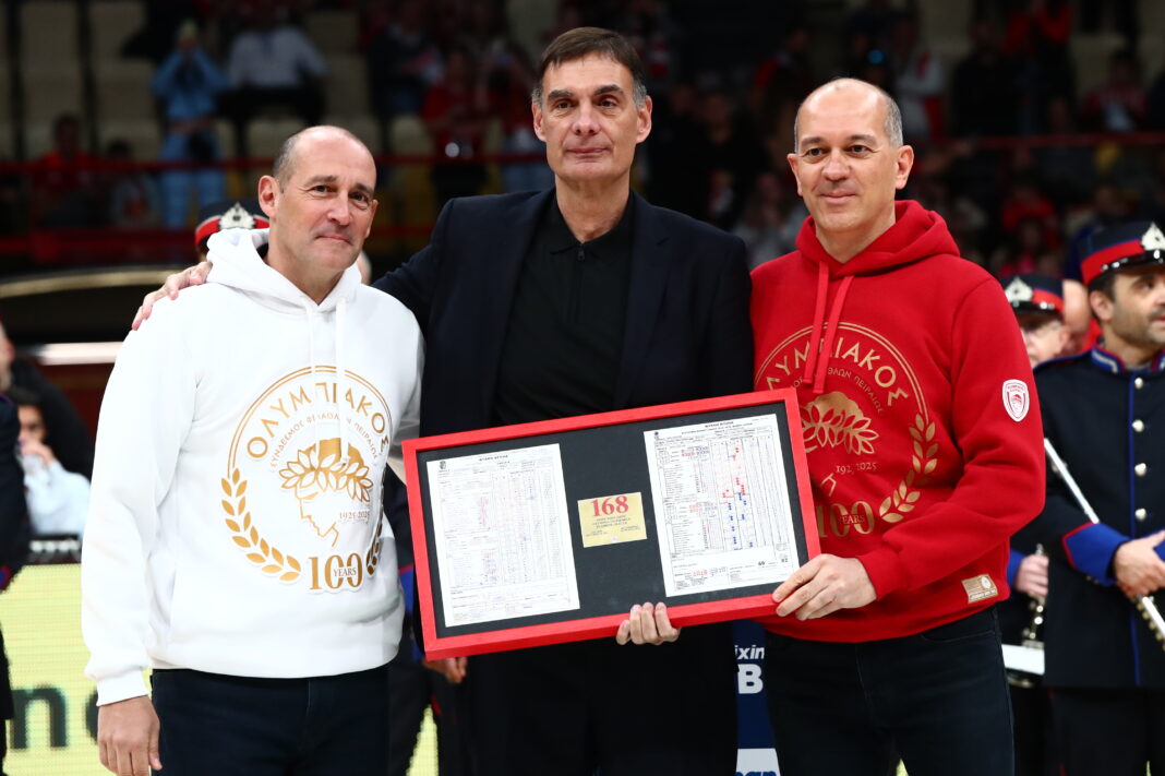 Παναγιώτης και Γιώργος Αγγελόπουλος βράβευσαν τον Γιώργο Μπαρτζώκα σε μία όμορφη στιγμή στο ΣΕΦ πριν την έναρξη του αγώνα με τον Κολοσσό για την 20η αγωνιστική της GBL.
