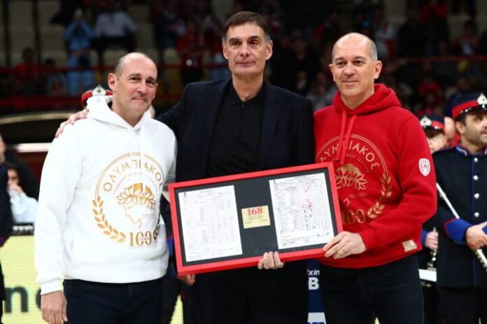 Παναγιώτης και Γιώργος Αγγελόπουλος βράβευσαν τον πολυνίκη Γιώργο Μπαρτζώκα σε μία όμορφη στιγμή στο ΣΕΦ πριν την έναρξη του αγώνα με τον Κολοσσό