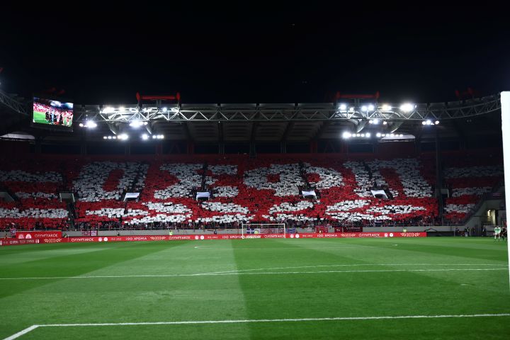 Οι φίλοι του Ολυμπιακού σήκωσαν ένα εντυπωσιακό κορεό που δεν έχει προηγούμενο, καθώς κάλυψε όλο το γήπεδο που ήταν κατάμεστο. Το σήμα του Ολυμπιακού, το όνομα του συλλόγου και ο αριθμός 100, δημιούργησαν ένα μαγικό αποτέλεσμα που άφησε τους πάντες με ανοιχτό το στόμα.
