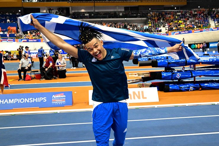Ο πρωταθλητής του επί κοντώ κατέκτησε το χρυσό μετάλλιο με άλμα στα 5.90 μέτρα στο ευρωπαϊκό κλειστού στίβου στο Άπελντορν και πανηγυρίζει την παρουσία του στην κορυφή του βάθρου για πρώτη φορά στην καριέρα του σε επίπεδο Ανδρών στο επί κοντώ!