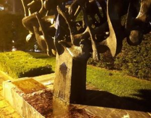 Παράλληλα, κατέστρεψαν και τα λουλούδια που ήταν τοποθετημένα στο μνημείο.