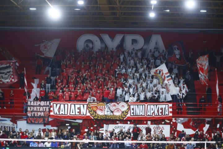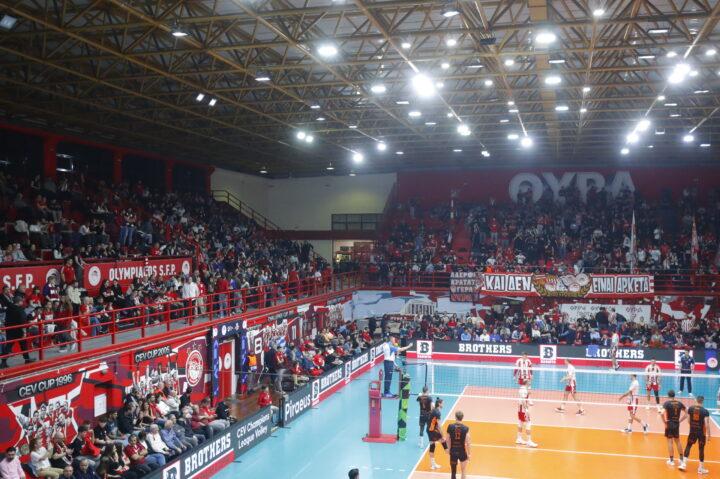 Μία υπέροχη ατμόσφαιρα δημιούργησαν οι φίλοι του Ολυμπιακού στο γεμάτο κλειστό του Ρέντη «Μελίνα Μερκούρη» στον σπουδαία αγώνα με τη Γιαστρέμπσκι για τους «8» του CEV Champions League.