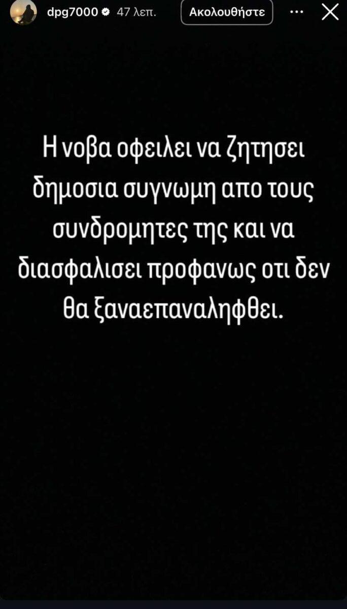 Στο σήμερα, επανήλθε με νέα ανάρτηση για το συγκεκριμένο θέμα που μόνος του έθιξε καλώντας το συνδρομητικό κανάλι να «ζητήσει συγγνώμη από τους συνδρομητές του και να διασφαλίζει ότι δεν θα επαναληφθεί».