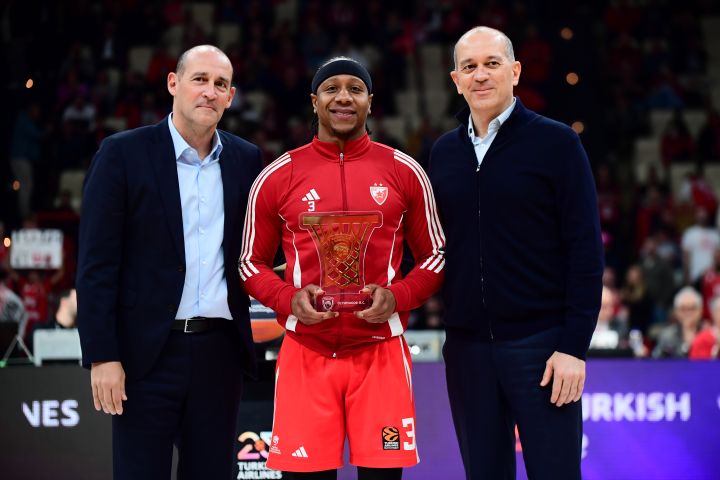Τον Αϊζάια Κάνααν βράβευσαν πριν την έναρξη της αναμέτρησης του Ολυμπιακού με τον Ερυθρό Αστέρα οι Παναγιώτης και Γιώργος Αγγελόπουλος.