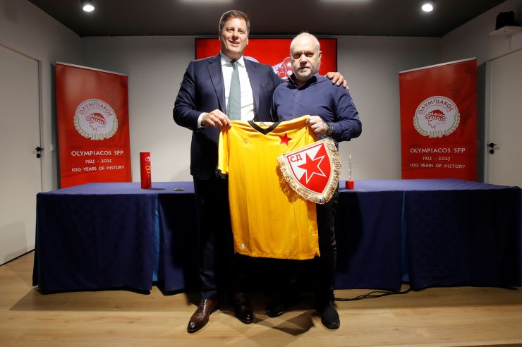 Ο πρόεδρος του Ολυμπιακού Σ.Φ.Π., Μιχάλης Κουντούρης, υποδέχθηκε την πολυμελή αποστολή του Ερυθρού Αστέρα, με επικεφαλής τον Ζβέζνταν Τέρζιτς, σε μια συνάντηση που ανέδειξε για ακόμα μία φορά το δυνατό δεσμό που ενώνει τους δύο συλλόγους. Στη συνάντηση συμμετείχαν κορυφαία στελέχη του Ερυθρού Αστέρα από όλα τα αθλήματα, επιβεβαιώνοντας τη διαχρονική συνεργασία και αλληλοστήριξη μεταξύ των δύο σωματείων.