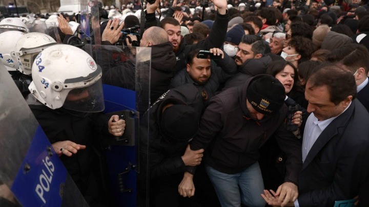 Χθες το βράδυ συγκεντρώσεις διαμαρτυρίας με την συμμετοχή χιλιάδων πολιτών πραγματοποιήθηκαν στην Κωνσταντινούπολη, την Αγκυρα και άλλες τουρκικές πόλεις. Συνολικά από την Τετάρτη, ημέρα της σύλληψης, έχουν πραγματοποιηθεί διαδηλώσεις σε 29 από τις 81 επαρχίες της Τουρκίας.