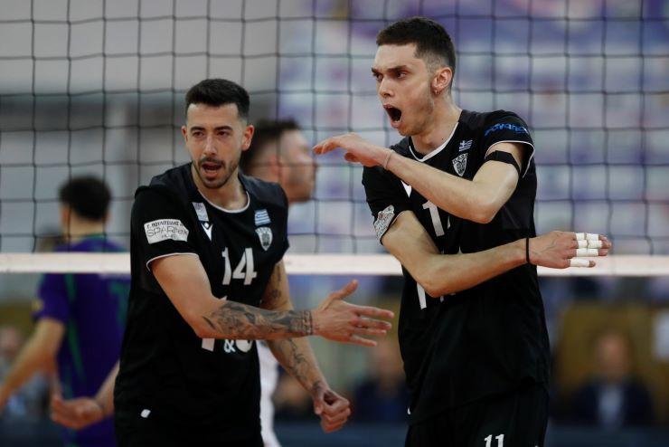 Ο Δημήτρης Μούχλιας έδωσε πραγματικό ρεσιτάλ με 27 πόντους (62% επίθεση, 50% αποτελεσματικότητα), ο Μάρκος Γαλιώτος διόρθωνε τις κακές υποδοχές και το άσχημο παιχνίδι των ακραίων του και ο Νικολάι Κόλεφ – που έπαιξε χωρίς προπόνηση – με 17 πόντους (5 μπλοκ) έσβησαν πλήρως τον Παναθηναϊκό που κατέρρευσε στο τάι μπρέικ αφού το 7-8 μετατράπηκε σε 7-14.
