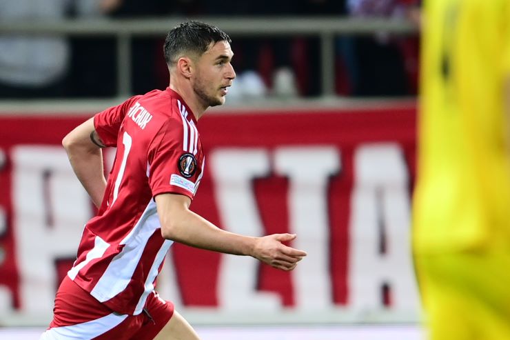 Οι Ερυθρόλευκοι ξεκινούν με τον Γιάρεμτσουκ στην κορυφή της επίθεσης και τον Μπιανκόν στο πλευρό του Πιρόλα στο κέντρο της άμυνας. Ελ Κααμπί και Κωστούλας που ξεπέρασαν τους τραυματισμούς τους βρίσκονται στον πάγκο.
