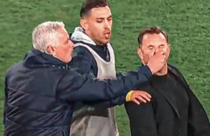 Μετά το τέλος του αγώνα κι ενώ οι δύο προπονητές χαιρετούσαν τους διαιτητές, ο τεχνικός της Γαλατά, Οκάν Μπουρούκ, έκανε το… λάθος να πανηγυρίσει μπροστά στον Πορτογάλο, ο οποίος αντέδρασε πιάνοντάς τον δυνατά από τη μύτη και ρίχνοντάς τον στο έδαφος!
