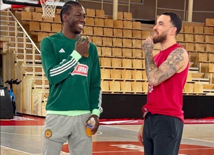 Μια φωτογραφία του Κέντρικ Ναν και του Μάικ Τζέιμς από την προπόνηση του Παναθηναϊκού στο γήπεδο της Μονακό πόσταρε η Euroleague στον επίσημο λογαριασμό της στο X.