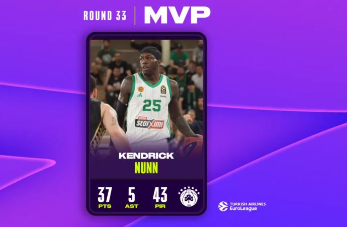 Ο Κέντρικ Ναν απέσπασε το τρίτο βραβείο MVP στη φετινή EuroLeague μετά την εκπληκτική εμφάνιση στο Πριγκιπάτο στη νίκη του Παναθηναϊκού απέναντι στη Μονακό με 76-88.