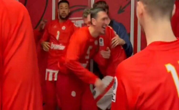 Η ΚΑΕ Ολυμπιακός τρόλαρε με επικό τρόπο τον Σάσα Βεζένκοφ για την κίνησή του να πέσει με… φόρα πάνω στον Γιαννούλη Λαρεντζάκη στο γνωστό ερυθρόλευκο τελετουργικό πριν τον αγώνα με τον Πανιώνιο για την προημιτελική φάση της GBL.