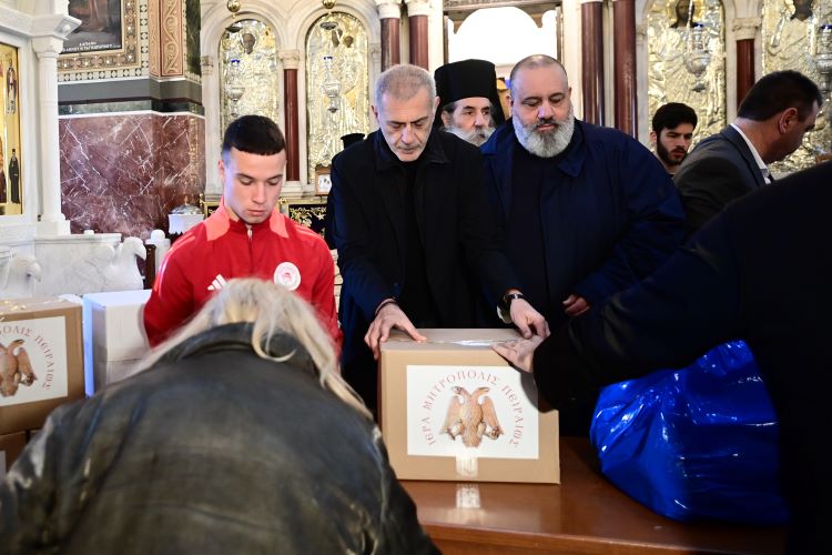Το έργο της Ιεράς Μητρόπολης Πειραιά στηρίζουν και φέτος η ΠΑΕ Ολυμπιακός και ο Βαγγέλης Μαρινάκης. Αντιπροσωπεία του συλλόγου βρέθηκε το πρωί της Παρασκευής (11/4) στον Ιερό Ναό του Αγίου Νικολάου και μοίρασε χιλιάδες δέματα τροφίμων για το Πάσχα ενώ παρέδωσε και επιταγές για την οικονομική ενίσχυση του κοινωνικού έργου.