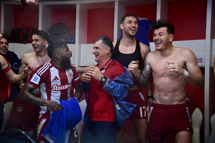 Στα αποδυτήρια ακολούθησε ένα έξαλλο πάρτι, με τους ποδοσφαιριστές να ζουν με την ψυχή τους αυτές τις μαγικές στιγμές και τον Μεντιλίμπαρ να την… πατάει, καθώς είδε τους παίκτες του να τον μπουγελώνουν με την είσοδο του στα αποδυτήρια και στη συνέχεια να φωνάζουν το όνομα του.