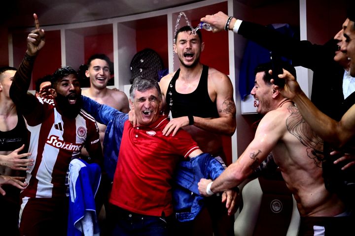 Στα αποδυτήρια ακολούθησε ένα έξαλλο πάρτι, με τους ποδοσφαιριστές να ζουν με την ψυχή τους αυτές τις μαγικές στιγμές και τον Μεντιλίμπαρ να την… πατάει, καθώς είδε τους παίκτες του να τον μπουγελώνουν με την είσοδο του στα αποδυτήρια και στη συνέχεια να φωνάζουν το όνομα του.