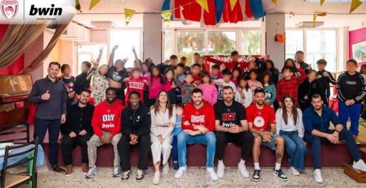 Τα πρόσωπα των παιδιών φωτίστηκαν όταν είδαν μπροστά τους τους αγαπημένους τους παίκτες, με την αρχική έκπληξη να μετατρέπεται άμεσα σε ενθουσιασμό. Οι «Ερυθρόλευκοι» άφησαν στο… παρκέ τις αγωνιστικές τους υποχρεώσεις, αντάλλαξαν αγκαλιές με τα παιδιά, υπέγραψαν αυτόγραφα και φωτογραφήθηκαν, ενώ μαζί με τους εθελοντές της bwin προσέφεραν απλόχερα χρόνο και στοργή.