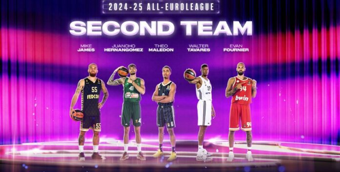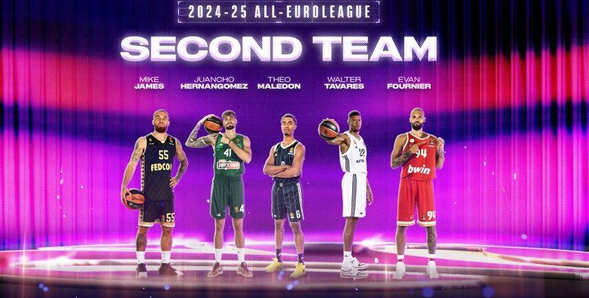 Ο Έντι Ταβάρες της Ρεάλ Μαδρίτης βρίσκεται ξανά στους κορυφαίους της σεζόν, ενώ οι υπόλοιποι που συμπληρώνουν τη δεύτερη καλύτερη πεντάδα της χρονιάς είναι οι Μάικ Τζέιμς (Μονακό και περσινός MVP της regular season) και Τεό Μαλεντόν (Βιλερμπάν).