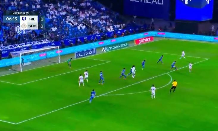 Ο Πορτογάλος μεσοεπιθετικός έπιασε ένα τρομερό σουτ εκτός περιοχής με το αριστερό και έστειλε την μπάλα στο αριστερό παραθυράκι του Γιασίν Μπουνού για να δώσει προσωρινά το προβάδισμα στην Αλ Σαμπάμπ μόλις στο 7ο λεπτό.