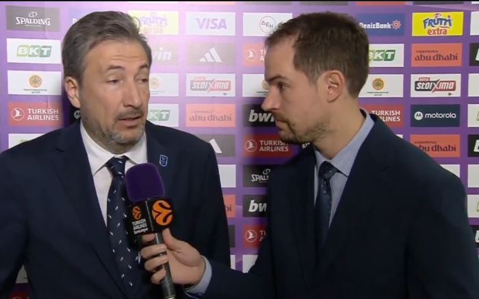 Ο λόγος που ο Τούρκος προπονητής φώναζε μετά τη νίκη της ομάδας του παραμένει άγνωστος, ωστόσο ο Λούκα Μπάνκι φαίνεται να… αποσυντονίστηκε από τις φωνές την ώρα που πραγματοποιούσε τις δικές του δηλώσεις στο μικρόφωνο της EuroLeague.