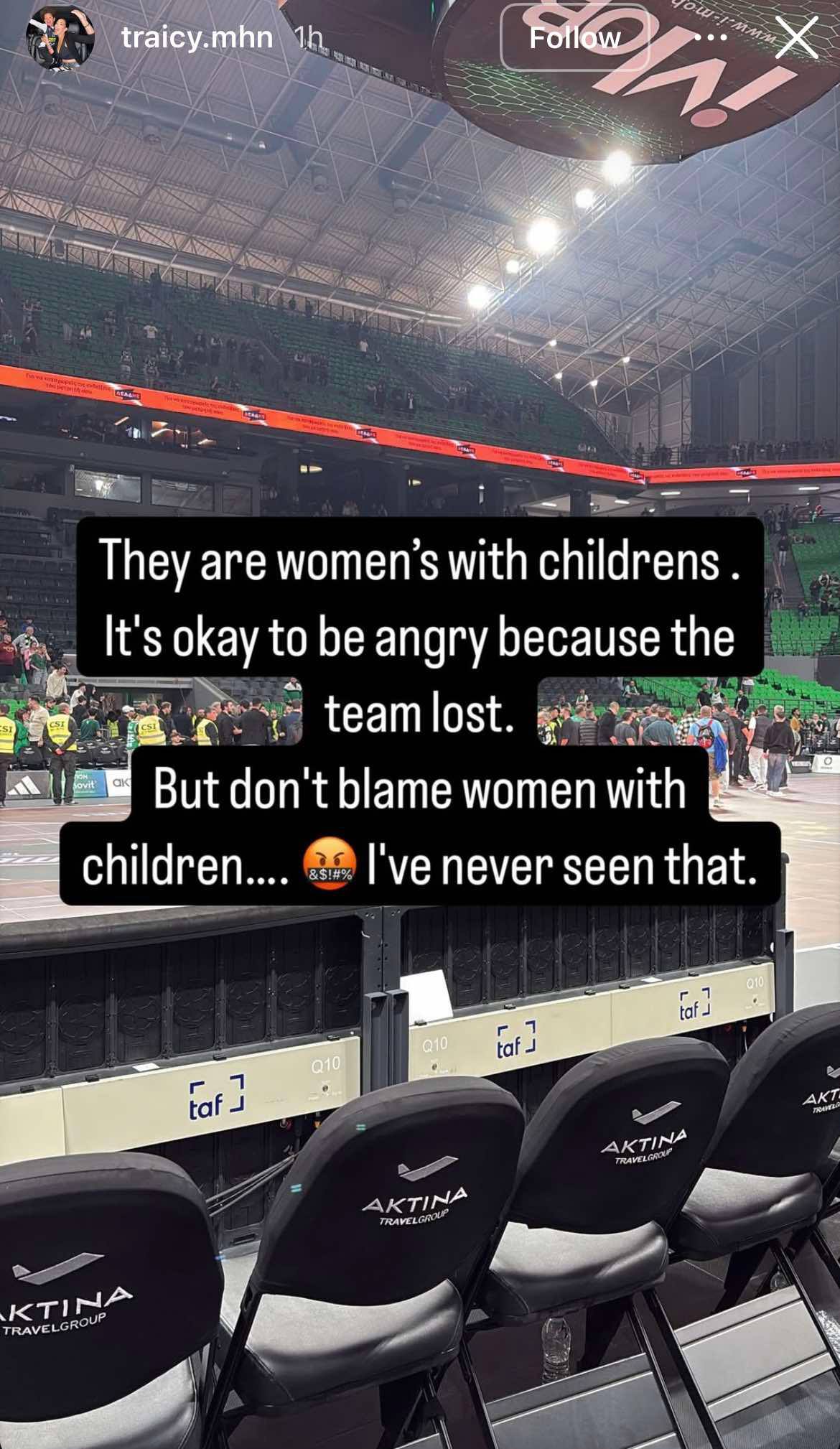 «Είναι γυναίκες με τα παιδιά τους. Είναι οκέι να είσαι θυμωμένος επειδή η ομάδα έχασε αλλά μην κατηγορείς γυναίκες με παιδιά. Δεν το έχω δει ποτέ αυτό», ανέφερε η Τρέισι Λεσόιρ.
