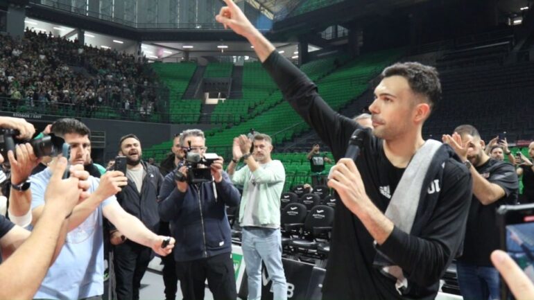 Μάλιστα ο αρχηγός Κώστας Σλούκας θέλησε να μιλήσει με μικρόφωνο στον κόσμο στέλνοντας μήνυμα για επιστροφής της σειράς των playoffs στο ΟΑΚΑ. Συγκεκριμένα τους ευχαρίστησε για τη στήριξή τους λέγοντας: