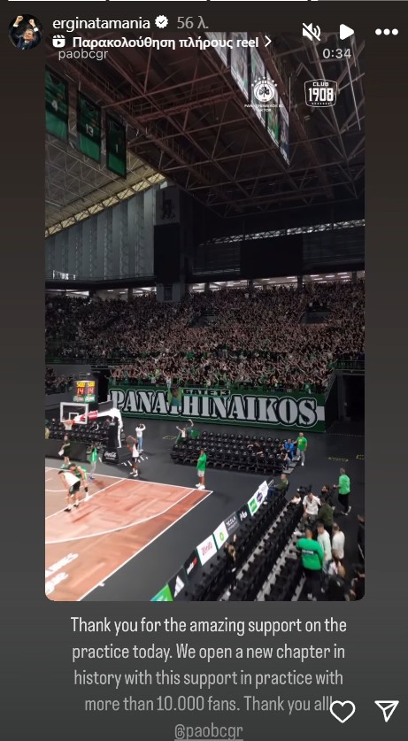 Η θύρα 13 κάλεσε τον κόσμο της ομάδας να δώσει δυναμικό «παρών» στη σημερινή προπόνηση, όπως κι έγινε καθώς το ΟΑΚΑ ήταν μισογεμάτο, με τους φιλάθλους να ζητούν την πρόκριση στην Τουρκία με δύο νίκες και να αποθεώνουν τον Αταμάν και τους παίκτες του.