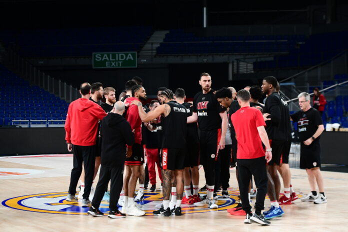 Οι Ερυθρόλευκοι γνωρίζουν πως δεν θα έχουν στη σύνθεσή τους τον Τάιλερ Ντόρσεϊ που έμεινε εκτός λόγω θλάσης στον δεξί δικέφαλο, αλλά δεν αντιμετωπίζουν άλλα προβλήματα τραυματισμών και παρά τη χθεσινή ταλαιπωρία με το πρωτοφανές μπλακ άουτ στην ισπανική πρωτεύουσα, δείχνουν σε καλή κατάσταση κι αποφασισμένοι για τρίτη νίκη και τέταρτη σερί πρόκριση σε Final-4.