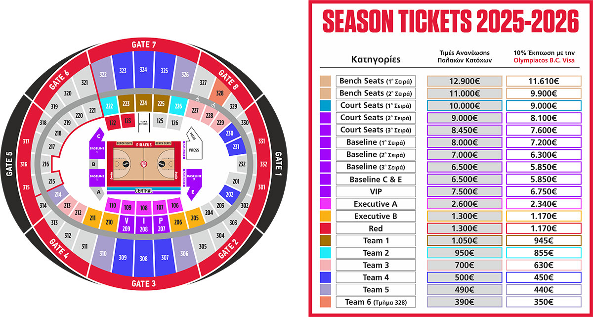 - Θύρα, τμήμα, σειρά και θέση που είχε την αγωνιστική περίοδο 2024/2025 (αφορά τους παλαιούς κατόχους)