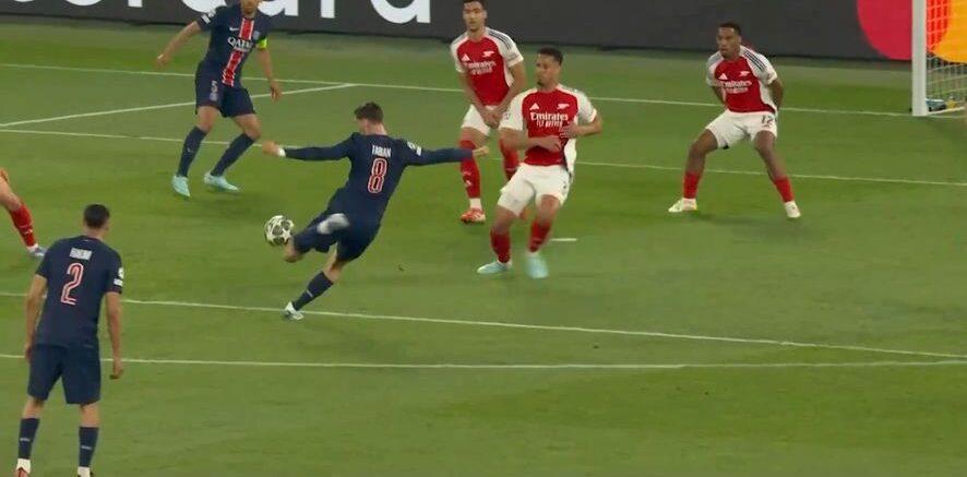 Η Άρσεναλ μπήκε καλύτερα στη ρεβάνς του «Παρκ Ντε Πρενς» και είχε τις στιγμές της με τους Ράις και Μαρτινέλι στα πρώτα λεπτά, αλλά το πρώτο γκολ το βρήκε η Παρί με εξαιρετικό βολέ του Φαμπιάν Ρουίθ.