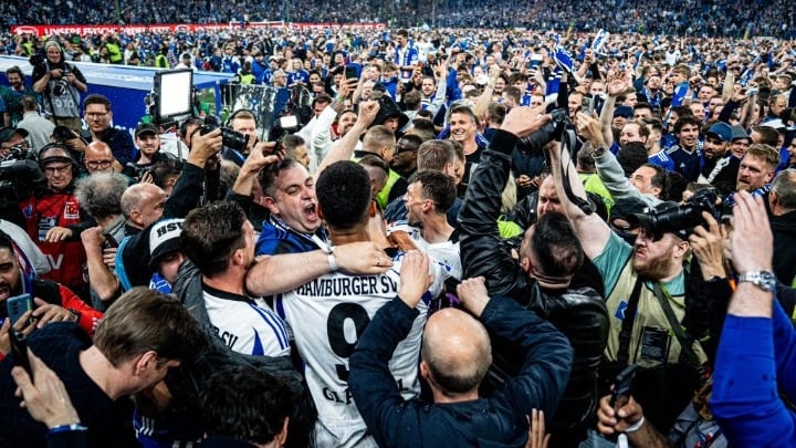 Το Αμβούργο, με 6 πρωταθλήματα Γερμανίας, πανηγύρισε την επιστροφή του στη Bundesliga μετά από επταετή απουσία, εξασφαλίζοντας και μαθηματικά την άνοδο με το επιβλητικό 6-1 επί της Ουλμ το Σάββατο.