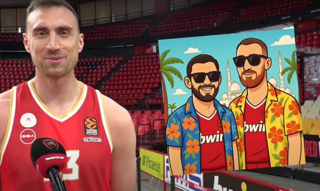 Η ερυθρόλευκη ΚΑΕ δημοσίευσε βίντεο όπου οι παίκτες κλήθηκαν να απαντήσουν με ποιον συμπαίκτη τους θα ήθελαν να βρίσκονται στο Άμπου Ντάμπι σε περίπτωση που μετά την κατάκτηση του τίτλου χάσουν το αεροπλάνο της επιστροφής.