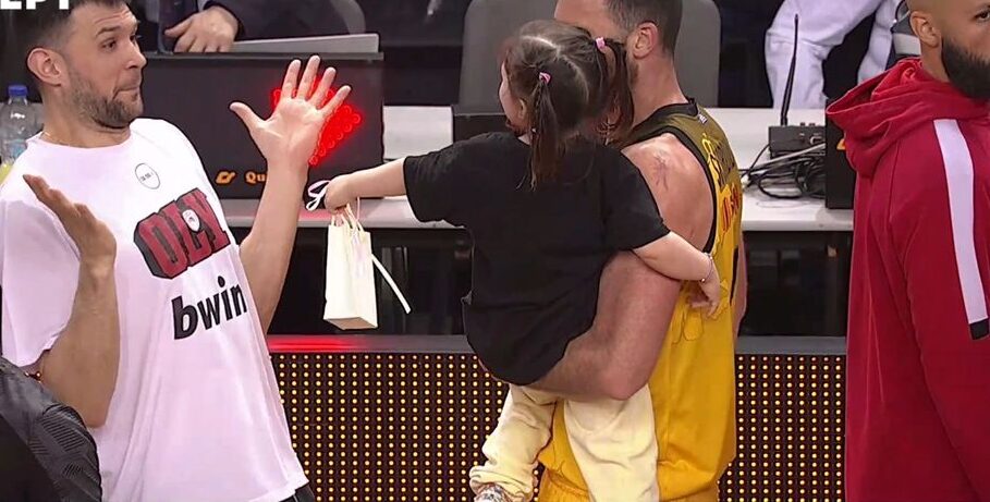 Όπως αυτή με την κορούλα του Σκορδίλη της ΑΕΚ να κάνει ένα δώρο στον αρχηγό του Ολυμπιακού, Κώστα Παπανικολάου, αμέσως μετά τη λήξη του δεύτερου ημιτελικού της GBL, με την αντίδραση του «Παπ» να είναι αληθινή και πολύ γλυκιά.
