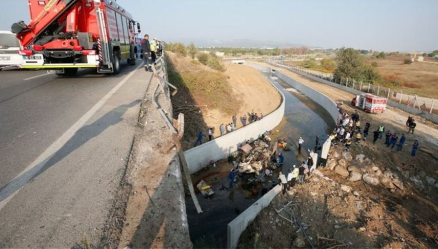 Όπως μεταδίδουν τουρκικά ΜΜΕ το δυστύχημα συνέβη στην περιοχή Μεντερές με το φορτηγό να φεύγει από το δρόμο και να πέφτει μέσα σε αρδευτικό κανάλι.