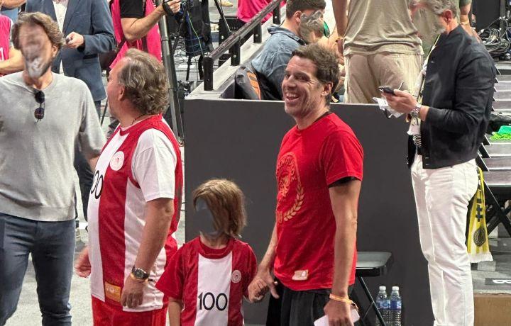 Εκεί βρίσκεται και ο άλλοτε αθλητικός διευθυντής της ΠΑΕ Ολυμπιακός, Δημήτρης Θεοδωρίδης, γιος του αείμνηστου Σάββα Θεοδωρίδη, μαζί με τον μικρό του γιο Σάββα με τον οποίο βρέθηκαν από νωρίς στην Etihad Arena.