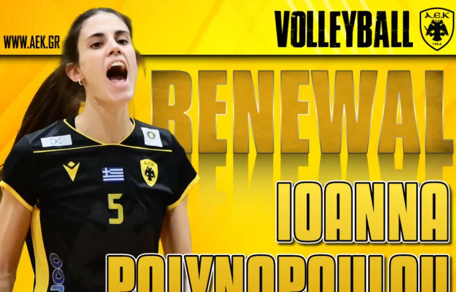 «Η ΑΕΚ βρίσκεται στην ευχάριστη θέση να ανακοινώσει την ανανέωση της συνεργασίας της με την Ιωάννα Πολυνοπούλου, που θα παραμείνει στο δυναμικό της γυναικείας ομάδας Βόλεϊ του Συλλόγου. Η 30χρονη (09/04/1995) διεθνής κεντρικός υπέγραψε το νέο της συμβόλαιο και θα συνεχίσει να φορά την κιτρινόμαυρη φανέλα.