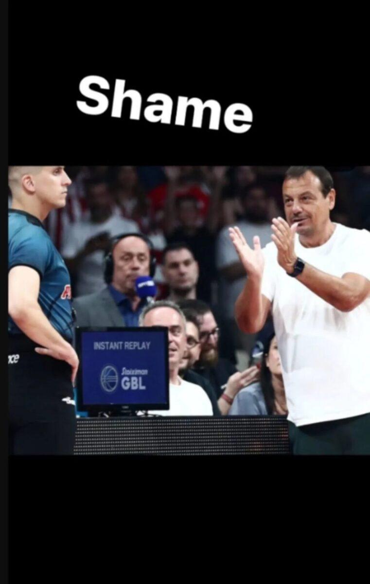 «Ντροπή», είναι η λέξη που χρησιμοποίησε ο Γκραντ σε instagram story που δείχνει τον Αταμάν να χειροκροτεί ειρωνικά τους διαιτητές.