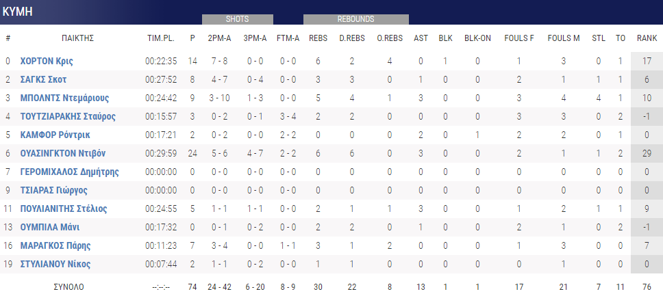 Στο συγκεκριμένο διάστημα η Κύμη εκμεταλλεύθηκε ορισμένες αμυντικές ολιγωρίες της ομάδας του Ντέιβιντ Μπλατ. Με τη γηπεδούχο ομάδα να προηγείται με 18-15 στο 9’.