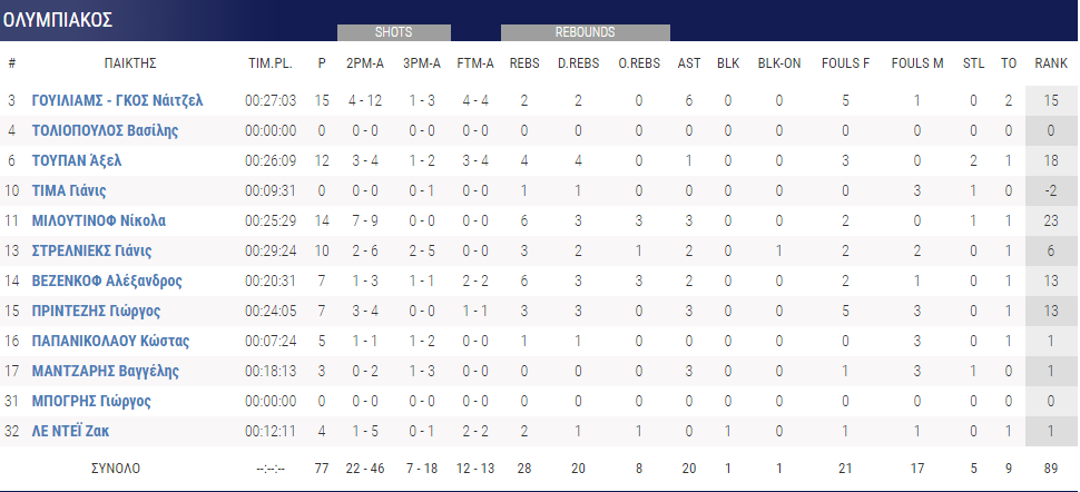 Ο Ολυμπιακός που παρατάχθηκε χωρίς τον αρχηγό και φυσικό του ηγέτη Βασίλη Σπανούλη, που πήρε ανάσες ξεκούρασης, είχε μεταπτώσεις στην απόδοσή του και απειλήθηκε σοβαρά με ήττα από το φιλόδοξο και πολύ ανταγωνιστικό συγκρότημα του Γιάννη Καστρίτη, το οποίο παρουσίασε πολλές αρετές.