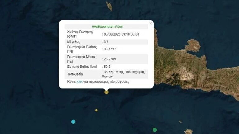 Σεισμός 3,7 Ρίχτερ έγινε ανοιχτά της Κρήτης το μεσημέρι της Παρασκευής (6/6).