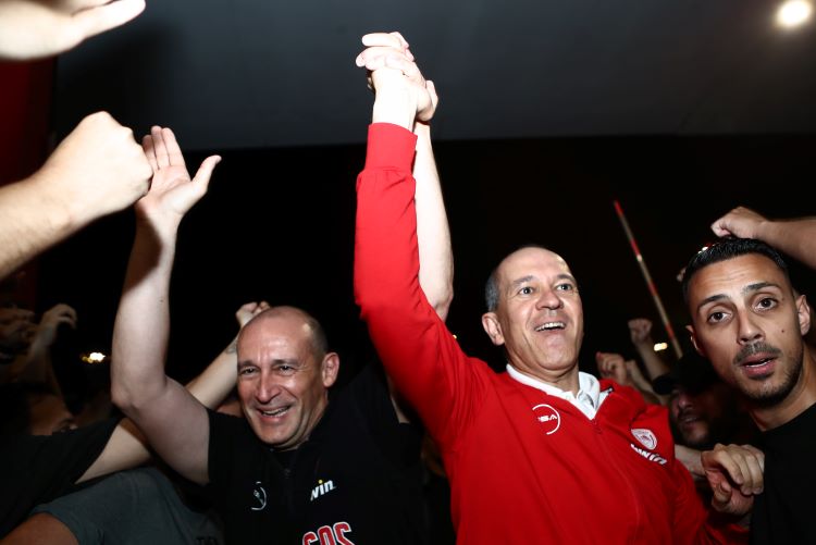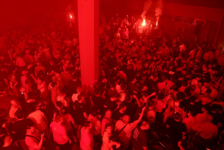 Παρόντων των αδελφών Αγγελόπουλων, ο χώρος έξω από το ΣΕΦ έγινε μέρα από τα καπνογόνα και τους πανηγυρισμούς των οπαδών του Ολυμπιακού που έσπευσαν να υποδεχτούν τους θριαμβευτές του ΟΑΚΑ