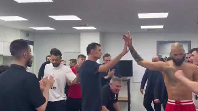 Ο Γιώργος Μπαρτζώκας μίλησε με λόγια καρδιάς στους παίκτες του στα αποδυτήρια του ΟΑΚΑ μετά τη σπουδαία αυτή νίκη τονίζοντας πως «αυτός είναι ο Ολυμπιακός» ενώ κάλεσε άπαντες να παραμείνουν προσηλωμένοι στο παιχνίδι της Κυριακής στο ΣΕΦ, όπου με νίκη οι Πειραιώτες θα κατακτήσουν τον τίτλο.