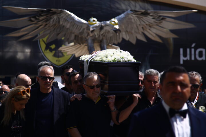 Οπαδοί της ΑΕΚ βρέθηκαν στο γήπεδο στη Νέα Φιλαδέλφεια και αποχαιρέτησαν τον ιστορικό αρχηγό της «Original 21» λίγο πριν την κηδεία του.