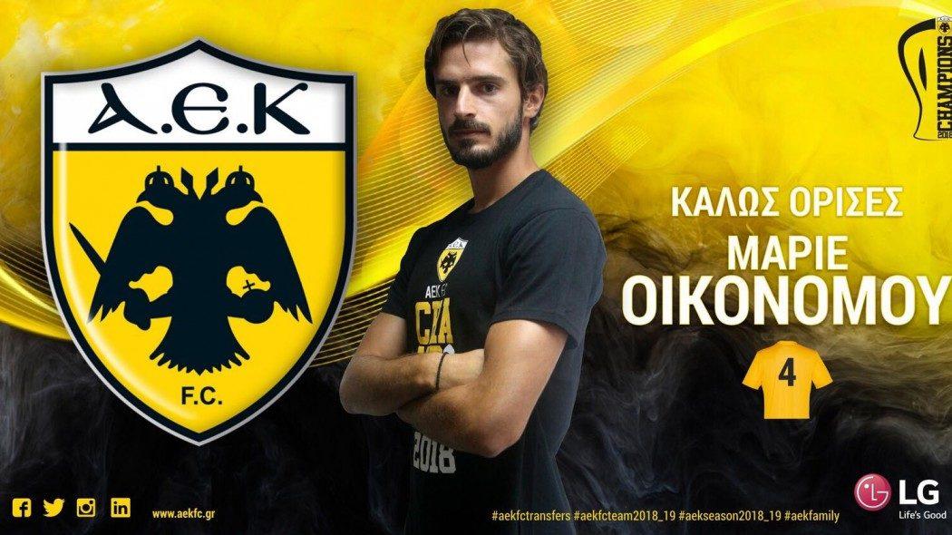 Παίκτης της ΑΕΚ είναι και επίσημα ο Μάριος Οικονόμου όπως ανακοίνωσαν οι «κιτρινόμαυροι». Ο Έλληνας αμυντικός θα αποτελέσει τον αντι-Βράνιες και τον παρτενέρ του Τσιγκρίνσκι στο κέντρο της άμυνας. Ο Οικονόμου θα φοράει τη φανέλα με το νούμερο 4.