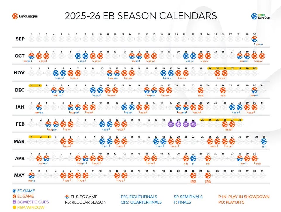 Αναλυτικά το γεμάτο καλεντάρι της Ευρωλίγκας για τη νέα σεζόν, από τα τέλη Σεπτεμβρίου μέχρι το Final-4 τον Μάιο: