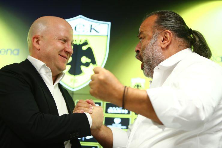 «Power, Passion, Pride, Work, Discipline and Luck. Welcome to AEK. Be our great gladiator to our Arena» (μτφ: Δύναμη, Πάθος, Περηφάνια, Δουλειά, Πειθαρχία και Τύχη. Γίνε ο μεγάλος μας μονομάχος στην αρένα μας), είπε στον Σέρβο και ακολούθησε η λέξη «Idemo» που στα σέρβικα σημαίνει «Πάμε».