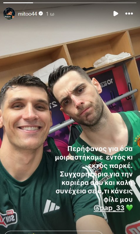 Ο Ντίνος Μήτογλου έσπευσε να αποχαιρετήσει μέσω Instagram τον συμπαίκτη του και να δηλώσει μεταξύ άλλων περήφανος για όσα περάσανε μαζί.