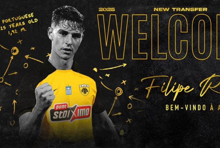 «Η ΠΑΕ ΑΕΚ ανακοινώνει την απόκτηση με μεταγραφή από τη Βιτόρια Γκιμαράες, του Πορτογάλου κεντρικού αμυντικού Φιλίπε Ρέλβας (Filipe do Bem Relvas Vito Oliveira).